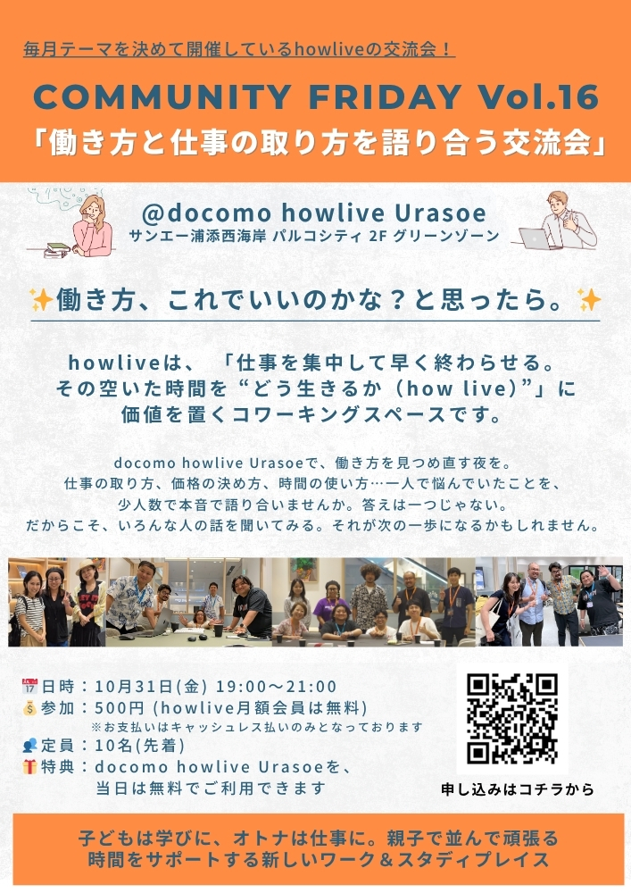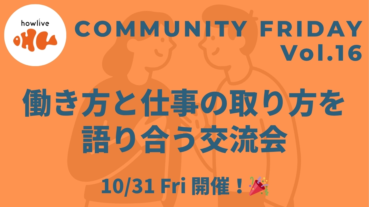 howliveがお届けする交流会「Community Friday」今月は夜の部19:00–21:00で開催します。