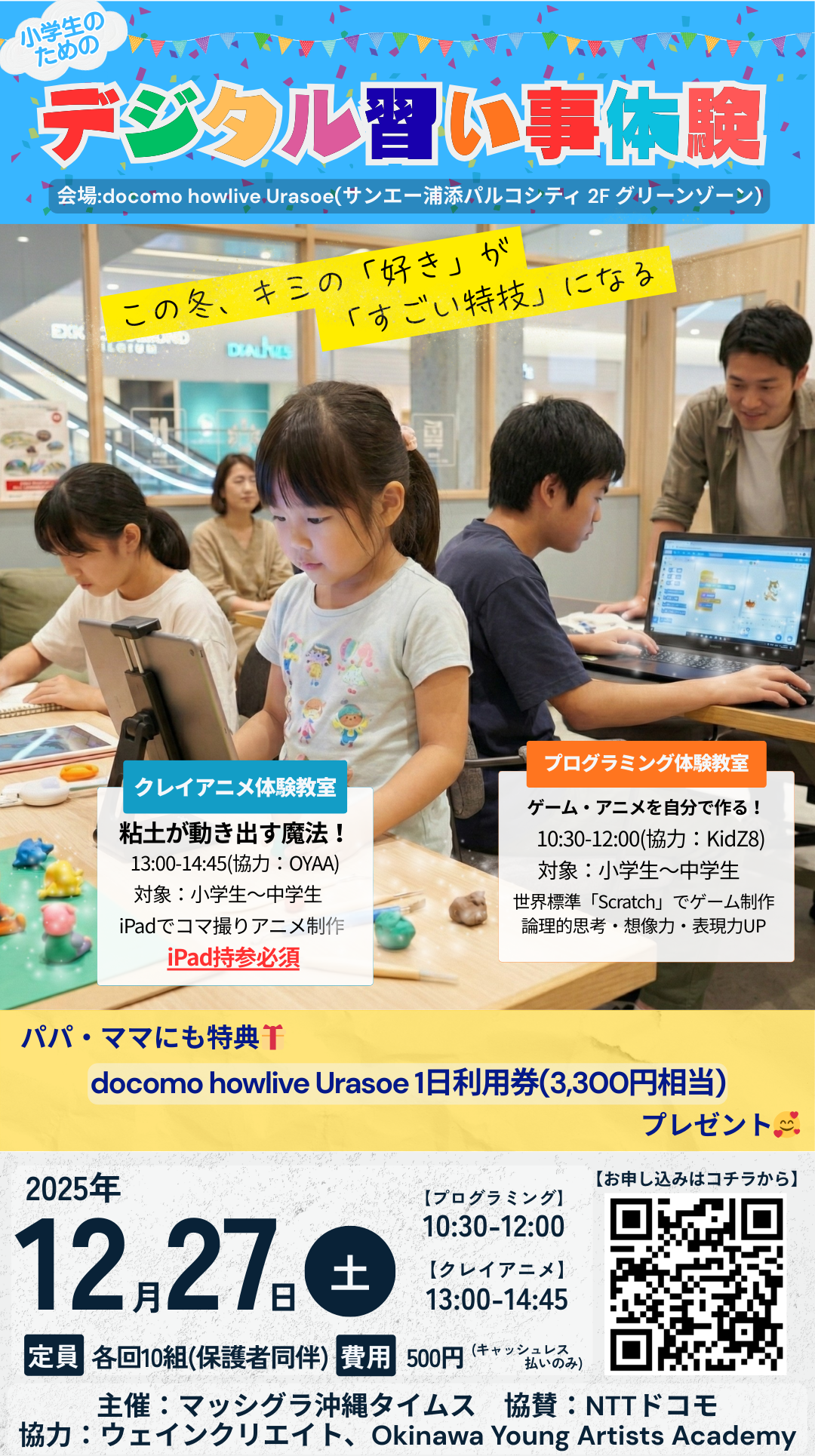 冬休みの思い出作りと、未来のスキルの発見を、パルコシティで一緒に楽しみましょう!