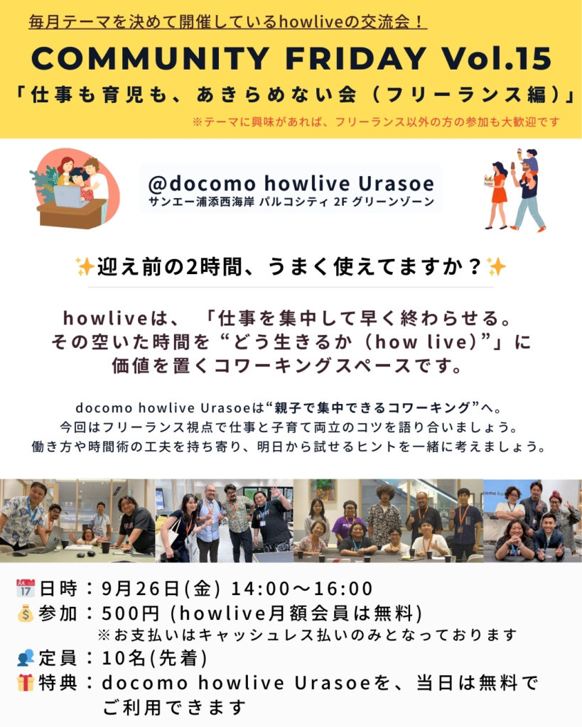 コミュニティフライデーVol.15開催決定!~テーマ「仕事も、育児も、あきらない会(フリーランス編)」